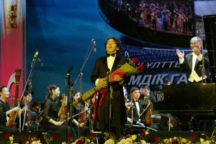 Звучание традиционных казахских народных инструментов и симфонического оркестра гармонично представлено в программе праздничного концерта. В исполнении молодых виртуозов ансамбля домбристов "Шабыт" искрометно и энергично прозвучали попурри "Куй шашу", ансамбль "Қорқыт Ата" представил гостям вечера "Триптих" Алькуата Казакпаева, а ансамбль скрипачей "Айголек" исполнил Сарасате "Наварра".