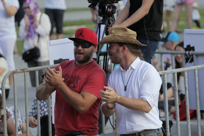 18.40 Участники группы из Венгрии Kerekes Band, накануне своей музыкой покорившие всех, сегодня присоединились к зрителям фестиваля и наслаждаются выступлением своих коллег из Литвы.