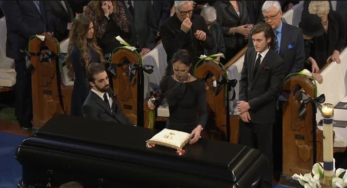 Сердца присутствовавших на церемонии растопило надгробное слово Рене-Шарля. "15 лет - небольшой срок для сына, чтобы хорошо узнать своего отца. Ты был деловым человеком, у тебя было мало свободного времени, но мы все равно умудрялись общаться, когда вместе играли в гольф, хоккей, покер и устраивали барбекю. Ты оставил мне много хороших воспоминаний, которые я пронесу через года, чтобы потом поделиться ими с моими братьями. Я обучу их всему, чему ты научил меня", - сказал юноша.