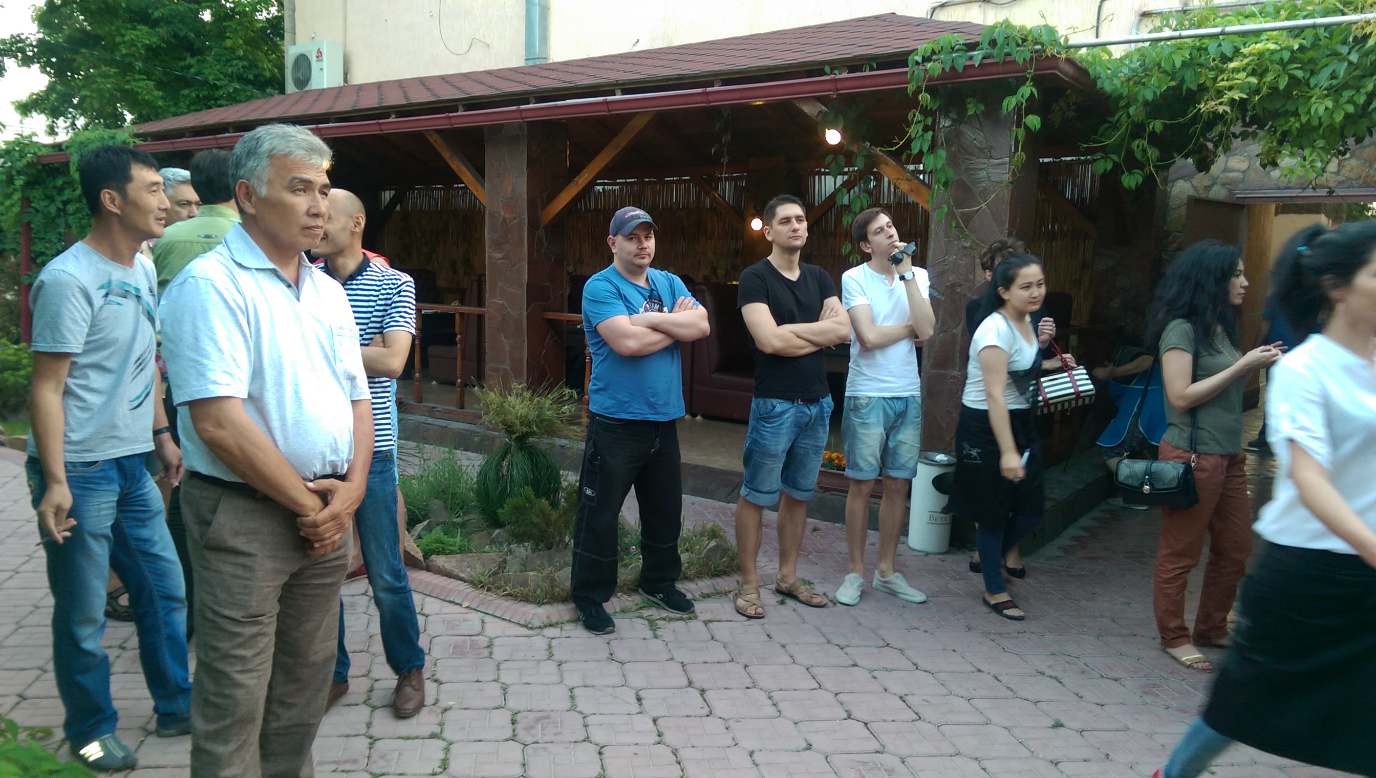 Среди поклонников Батырхана Шукенова люди разных профессий и возрастов, некоторые приходят с семьями. "Первое крупное выступление Батыра в составе коллектива "Арай" Розы Рымбаевой состоялось именно в Шымкенте, - рассказывает один из организаторов Владимир Привалов. - Выступить сегодня пожелали многие коллективы Шымкента. Многие знали Батыра лично".