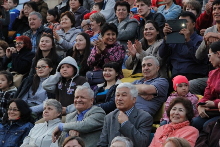 Выступление началось с исполнения музыкантами песен на казахском языке, в числе которых была народная композиция "Наз Коныр". Далее прозвучала песня группы "Кино" "Звезда по имени Солнце", а после - песни военных лет, такие как "Катюша", "Смуглянка" и другие. Во второй половине своего выступления участники музыкального коллектива "Хор Турецкого" почтили память выдающегося казахстанского певца и музыканта Батырхана Шукенова и исполнили его песню "Джулия".