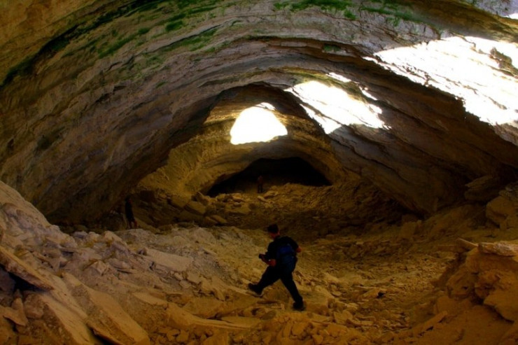 Стоит отметить, что большая часть грота хорошо освещается солнцем за счет того, что полость пещеры сложена из белых карстовых отложений. На дно провала достаточно легко спуститься и легко обследовать западную часть небольшой пещеры, при этом утопая в пыли известняка. Зато, по крайней мере, здесь специальное снаряжение не потребуется. Но, имейте в виду, что тут, как и в других пещерах, довольно прохладно. Советуем взять теплую накидку.