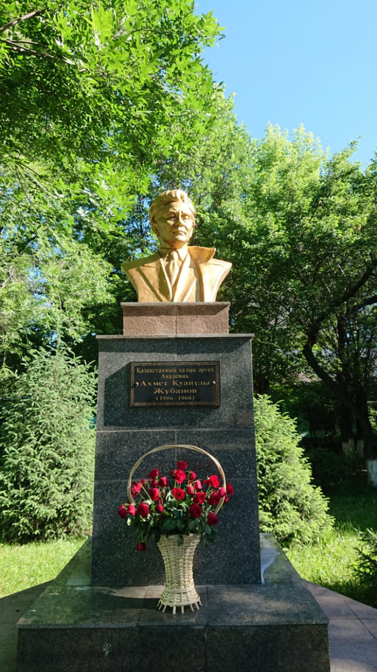 Недалеко от него, на соседней улице Ауэзова у здания Республиканской казахской средней школы-интерната имени Ахмета Жубанова находится бюст композитору. Бюст был установлен в 2009 году. Ахмет Жубанов является основателем профессионального музыкального образования в Казахстане. Им организован Казахский государственный академический оркестр народных инструментов имени Курмангазы и филармония имени Жамбыла. Ахмет Жубанов является автором музыки к опере "Абай", симфонического произведения "Марш памяти Курмангазы" и других музыкальных произведений.
