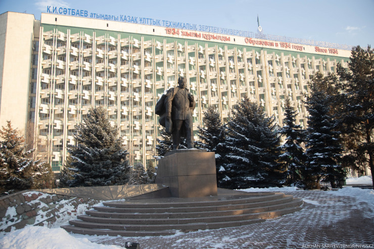Насладившись посещением музея, отправляемся дальше. На пересечении улиц Сатпаева и Байтурсынова в сквере у Satbayev University в 1999 году был установлен памятник геологу, первому президенту Академии наук Казахстана Канышу Сатпаеву. Монумент поставили в честь 100-летнего юбилея. Скульптором является Тулеген Досмагамбетов.