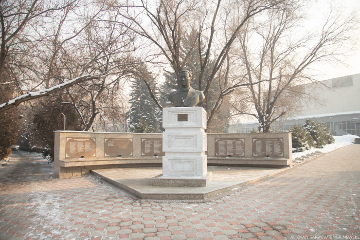 Тут же неподалеку можно найти бюст Абылай хана. Он находится на территории Казахского университета международных отношений и мировых языков, который назван в честь казахского хана. К слову, еще один памятник исторической личности находится на вокзале Алматы-2.
