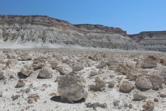 Небольшая долина, кажущаяся с первого взгляда белой инопланетной поверхностью, окружена с трех сторон амфитеатром самых разных ландшафтных причуд. Здесь можно увидеть каньоны, пики, горы в виде башен, замков, юрт и даже кораблей.