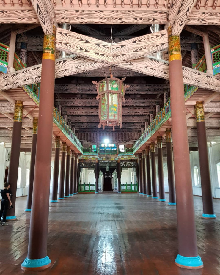 Главными объектами для посещения в Жаркенте являются три культурных центра. Первый - это Жаркентская мечеть (музей Хон Пик), музейный комплекс архитектуры и искусств, построенный в 1895 году на средства купца Валиахуна Юлдашева по проекту китайского архитектора Хон Пика. По просьбе Юлдашева, мечеть с минаретом высотой 19 метров была построена в китайском стиле, и этим выделяется среди архитектуры региона. Прекрасная деревянная резьба, 52 колонны из тян-шаньских елей, изготовленные без единого гвоздя, полихромная роспись в насыщенных тонах (во внутренних орнаментах встречаются растительные мотивы, арабская вязь, элементы уйгурского орнамента, а также изображения реальных и фантастических птиц, рыб и животных) - все это не только очень зрелищно, но и фотогенично. Особенно если помнить, что в годы советской власти историческое здание мечети, как и многие другие по огромной стране, использовались совсем не по назначению: здесь находились сначала склады и зернохранилище, потом казарма для пограничников, а еще кинотеатр и чайхана. К счастью, в 1969 году было решено возродить храм, реставрация завершилась созданием необычного для того времени музея.