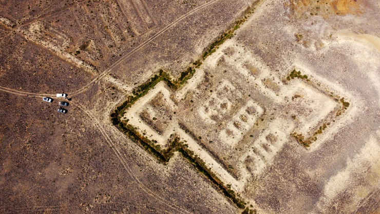 К счастью, нефтепромыслы находятся довольно далеко от этого места, поэтому ничто не мешало нам поснимать сей образец фортификационного искусства с воздуха.