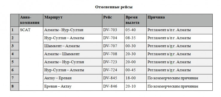 Всего по Казахстану планируется выполнение 66 рейсов.