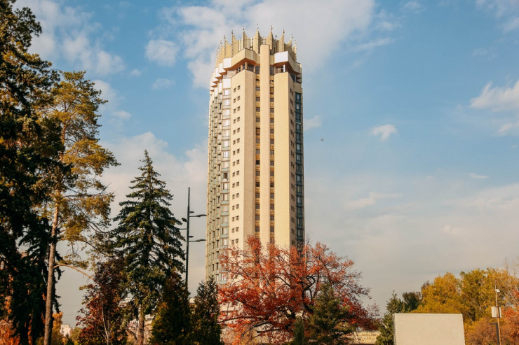 Визитная карточка Южной столицы - гостиница "Казахстан" по проспекту Достык. 102 метра в высоту и 26 этажей были отстроены в 70-х годах прошлого века. По сей день "Казахстан" принимает туристов и гостей Алматы в своих номерах и остается одним из высочайших зданий. По крайней мере, на панорамных фото Алматы всегда можно разглядеть здание с "короной на макушке". Кстати, "Казахстан" входит в Государственный список памятников истории и культуры местного значения и имеет статус памятника местного значения здания высотной гостиницы. А ее границы являются охраняемой зоной.