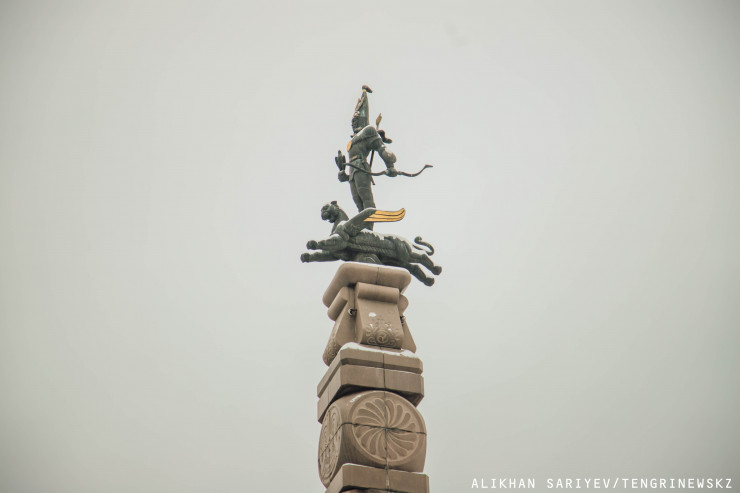 Монумент Независимости находится на площади Республики в Алматы. Он был открыт 16 декабря 1996 года. Идея создания монумента принадлежит Президенту республики Нурсултану Назарбаеву. Он, во время поездки в египетский город Луксор в 1993 году, увидел монумент в честь обретения независимости Египтом. Отсюда и столь необычные элементы в дизайне памятника.