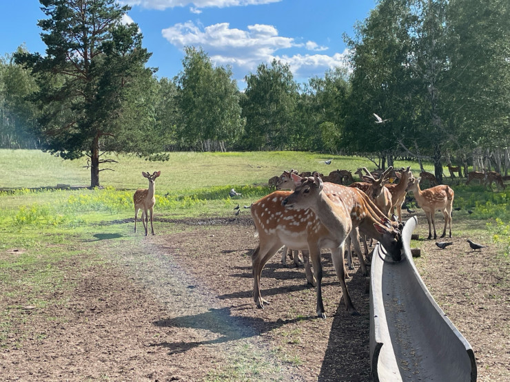 На лесной ферме здесь можно не только увидеть маралов в их естественной среде обитания, но и пройти пантолечение. Панты - это рога молодых маралов. Считается, что такое лечение полезно для мужского и женского здоровья, нервной системы, омоложения клеток и повышения иммунитета. Отметим, пантолечение относится к нетрадиционной медицине.