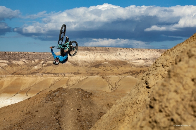 "Это были совершенно разные по формату поездки, от комфортных съемок в байк-парках Словакии, Австрии, Италии или Красной Поляне до экспедиций в Северном Приэльбрусье или Абхазии. Но такого длительного автотрипа и жизни в дикой природе, как сейчас на плато Устюрт в Западном Казахстане, у нас еще не было. У нас было довольно плотное расписание - для съемок оставалось всего 6 дней, и самым трудоемким моментом был поиск хорошего рельефа для катания, погода и освещение. Невыносимо яркий свет делал любые съемки до двух часов практически невозможными. Дневная температура достигала 42 градусов по Цельсию. Вот он, сентябрь в пустыне!" - поделился впечатлениями Петр Винокуров.