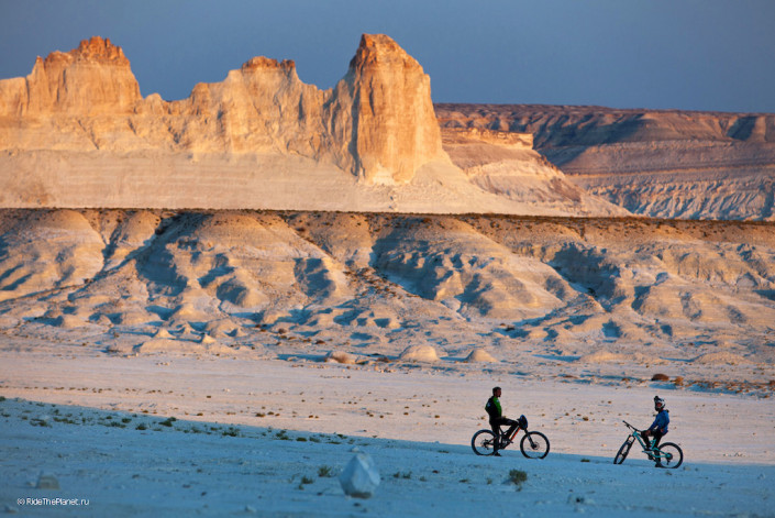 Российские экстремалы покорили плато Устюрт, передает Tengritravel.kz со ссылкой на видеопроект экстремального велоспорта RideThePlanet.