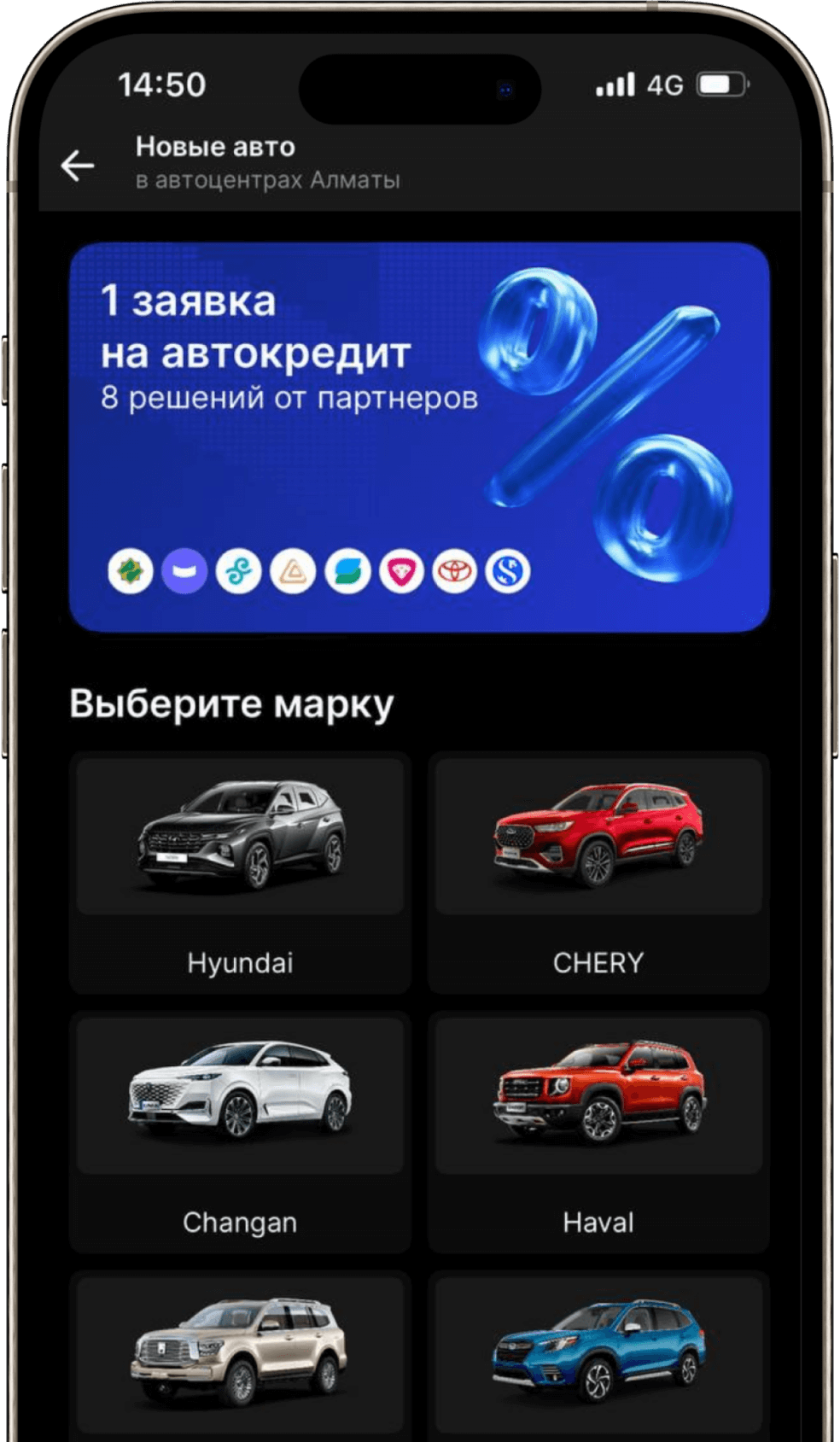 Mycar Finance, Банк ЦентрКредит, Eurasian Bank, Halyk Bank, Forte Bank, Sapa Digital Finance, Shinhan Finance, Toyota Financial Services