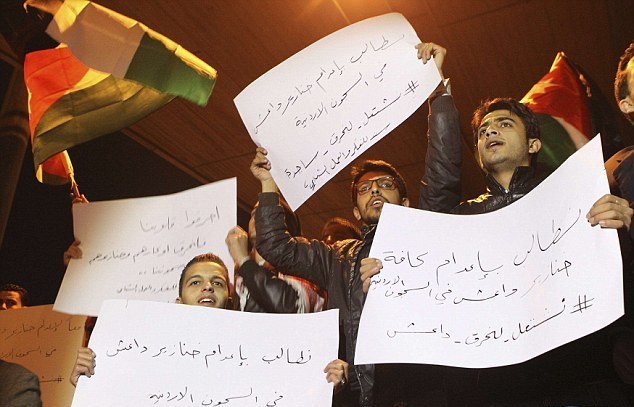 В столице Иордании Аммане тысячи людей также вышли на улицы, чтобы выразить свое возмущение казнью пилота.