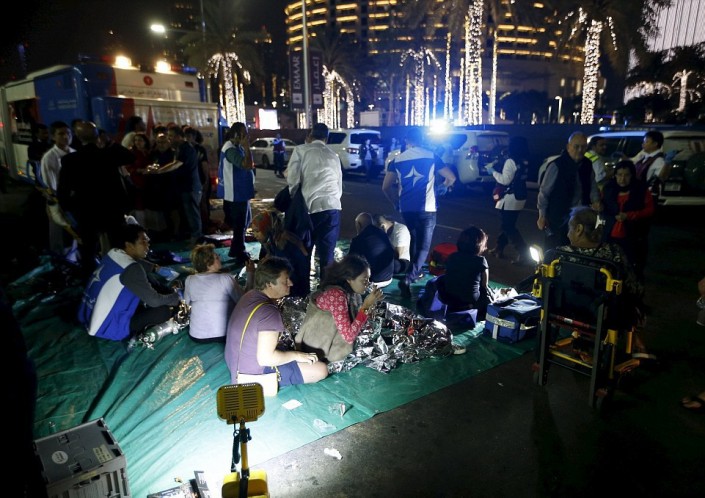 Огонь охватил несколько десятков этажей 300-метрового здания отеля. Что именно послужило причиной возгорания, сейчас выясняется. Отметим, что в данном районе по традиции запускают самый красочный салют в городе. Чтобы посмотреть шоу, здесь собираются тысячи людей.