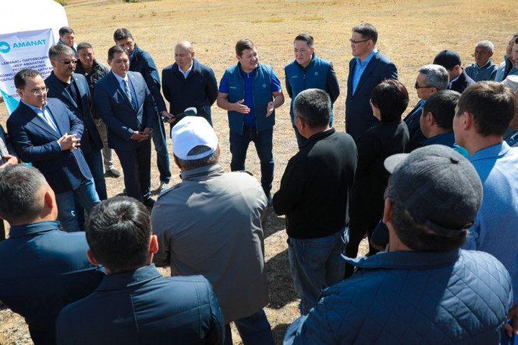 Исполнительный секретарь партии Amanat Асхат Оралов совместно с членами комиссии "Жер аманаты" встретился с сельскими жителями Карагандинской области, обсудив актуальные проблемы нехватки пастбищных земель.