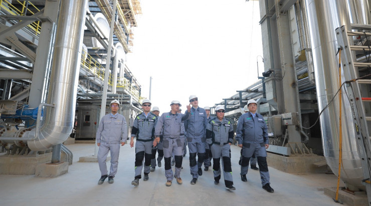 Глава "КазМунайГаза" ознакомился с ходом работ по подготовке к эксплуатации ИГХК и посетил основные объекты комплекса - парк хранения пропана, установку дегидрирования пропана и полимеризации пропилена, склад хранения готовой продукции, центральную заводскую лабораторию и центральную операторную.