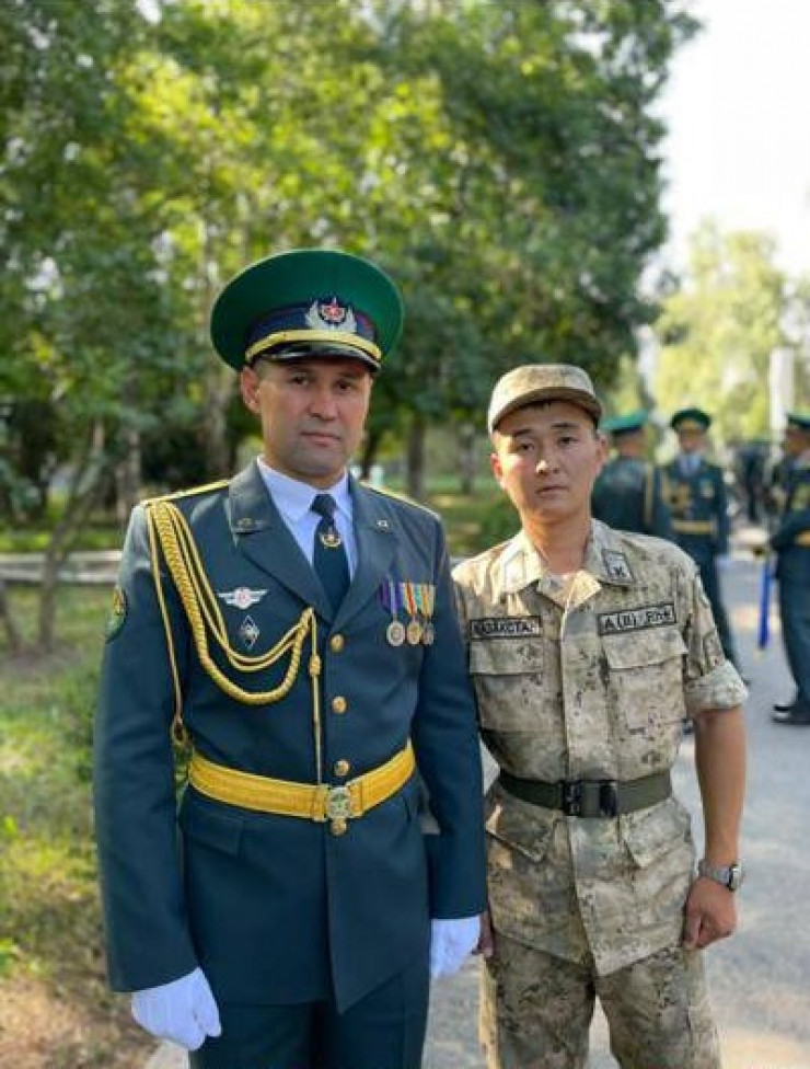 ...Вспоминается тот летний день 2009 года, когда он в числе четверых из 12 лучших курсантов учебного дивизиона подполковника Валентина Лютеровича получил офицерские погоны из рук Первого Президента – Верховного Главнокомандующего Вооруженными силами Нурсултана Назарбаева. Нескромно об этом часто говорить, но есть два человека – мама Турсынай Байтемировна и супруга Индира, которые не забывают об этом знаменательном в жизни курсанта событии. Что там говорить, узнав о таком факте, вместе с родными молодого офицера радовалось все родное село.