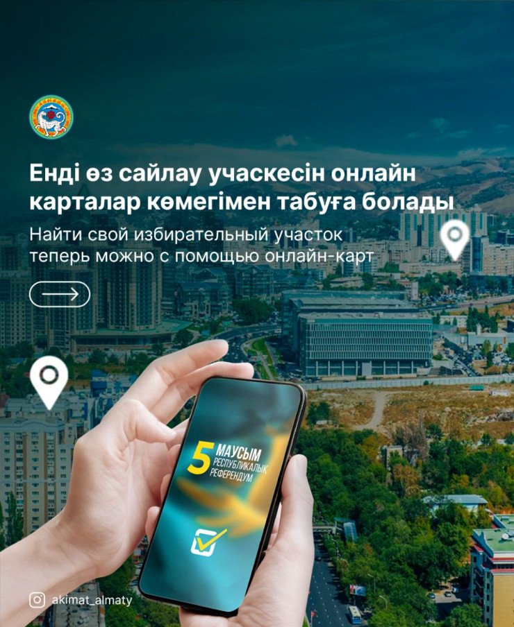 Проект реализован акиматом Алматы совместно с сервисами 2ГИС и Yandex Maps. Для удобства жителей города в картах приложений появилась возможность определения локации собственного участка. Ключевые слова для поиска: "Референдум учаскесі", "Избирательные участки", "Участок референдума", Referendum precinct.