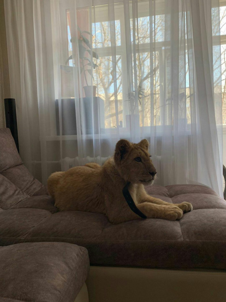 "Несколько львят сидели в грязной клетке. При мне мужчина, смотревший за животными, ударил одного палкой. Этим побитым львенком и оказался мой Симба. Он ужасно выглядел, был весь измучен, истощен, запуган. Уже дома я увидел у него лишай. Стал его лечить, первые два месяца кормил его из соски. За месяц я его на ноги поднял", - рассказывает хозяин животного.