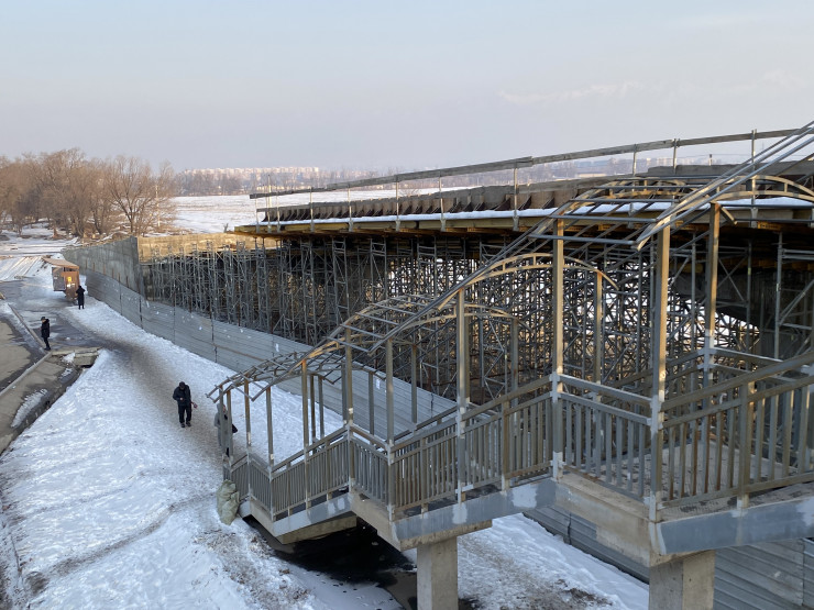Также до конца не оборудовали надземный пешеходный переход около ЖК "Асыл Арман". Там нет крыши и подъемников для инвалидов.