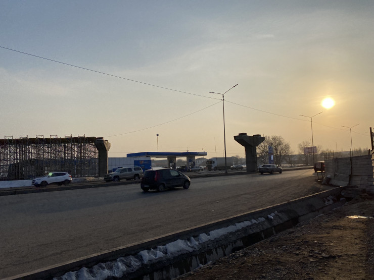 Сейчас там не ведутся никакие строительные работы. Жителям жилого комплекса "Асыл Арман", расположенного вдоль трассы Алматы - Бишкек, стройка эстакады закрыла единственный центральный выезд, сейчас они вынуждены добираться в город и обратно окольными дорогами.