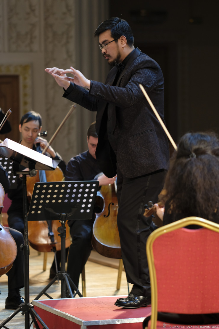 Художественный руководитель и главный дирижер – Канат Омаров. Выпускник Казахской национальной консерватории имени Курмангазы, участник Тихоокеанского музыкального фестиваля в Саппоро (Япония). С 2013 года член Международной оперной студии Цюрихского оперного театра, где был ассистентом генерального музыкального руководителя Цюрихской оперы Фабио Луизи. Выступал в таких залах, как Carnegie Hall (Нью-Йорк), Kennedy Center (Вашингтон), концертный зал Мариинского театра (Санкт-Петербург), большой зал Московской консерватории, Kitara Hall (Япония).
