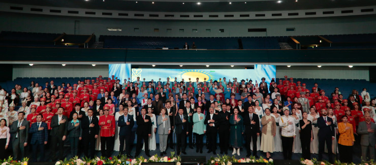 В ходе мероприятия аким Астаны Алтай Кульгинов вручил государственные награды работникам бюджетной сферы столицы. Во время выступления он отметил вклад в развитие города и страны и деятелей культуры.