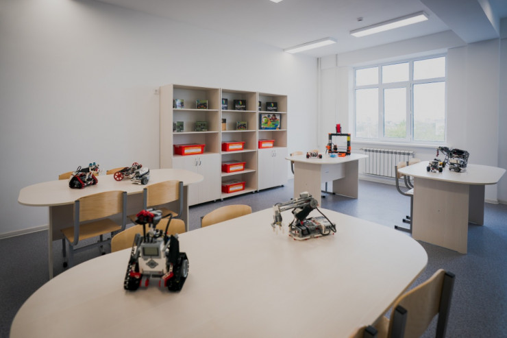 При строительстве нового корпуса школы также было учтено и материально-техническое оснащение: кабинеты STEM и робототехники, где учащиеся смогут создавать 3D-объекты, моделировать роботов, применять научно-технические знания сразу на практике; кабинет "Интеллектум", здесь дети будут готовиться к дебатам. От имени Президента страны школе вручен автобус для комфортного передвижения учащихся.