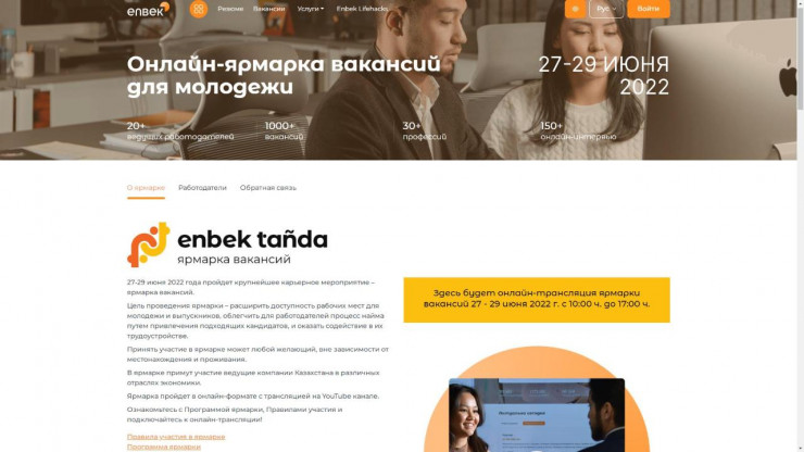 Принять участие в ярмарке вакансий сможет каждый казахстанец в возрасте от 18 до 35 лет. Для этого необходимо пройти регистрацию на портале Enbek.kz.