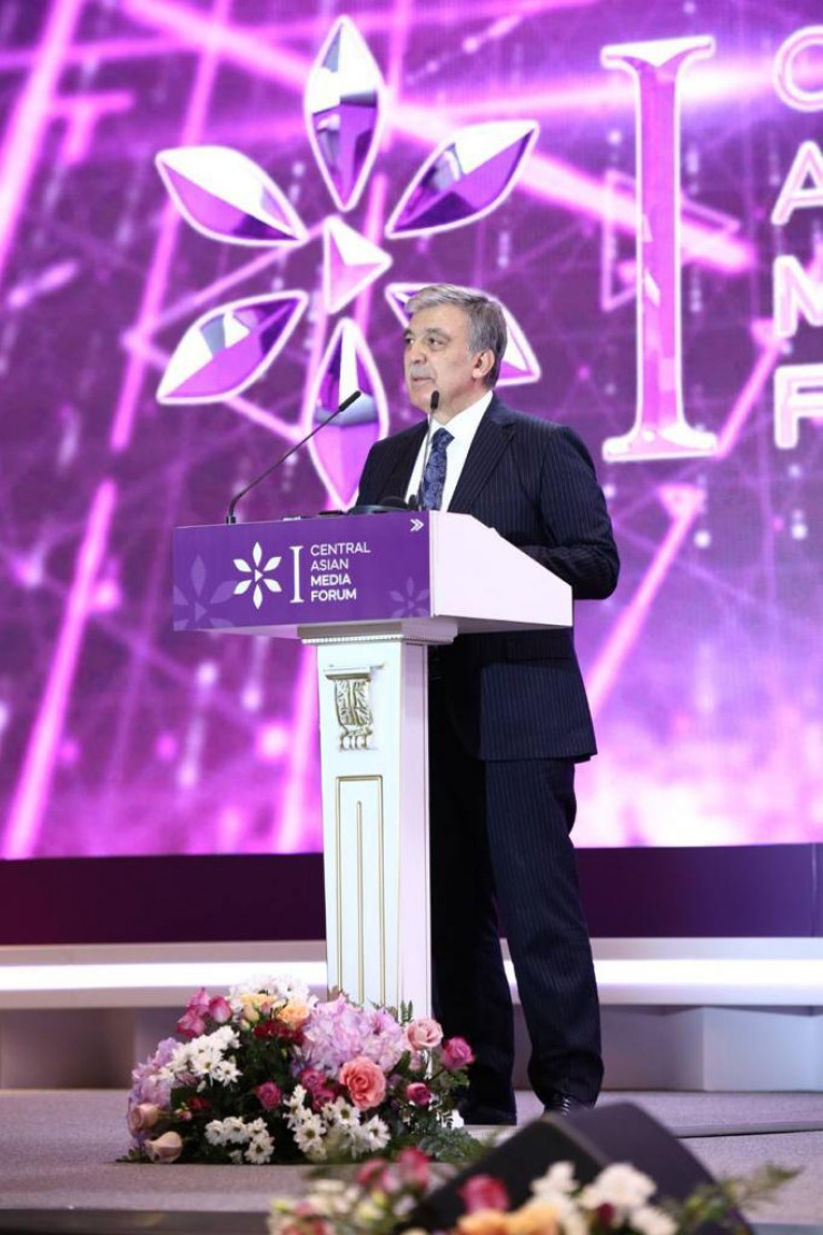 "Уважаемые участники форума! Поздравляю вас с открытием Центральноазиатского медиафорума! В нынешнюю эпоху быстро развивающихся массовых коммуникаций чрезвычайно важен обмен опытом в сфере СМИ и развитие культурно-гуманитарного сотрудничества в регионе.