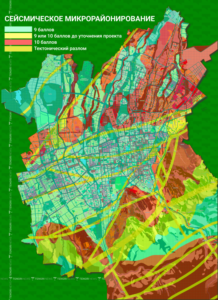 Корреспонденту Tengrinews.kz удалось получить подробную карту сейсмического микрозонирования территории Алматы и пообщаться со специалистам о том, можно ли строить на тектонических разломах и безопасно ли на них жить.