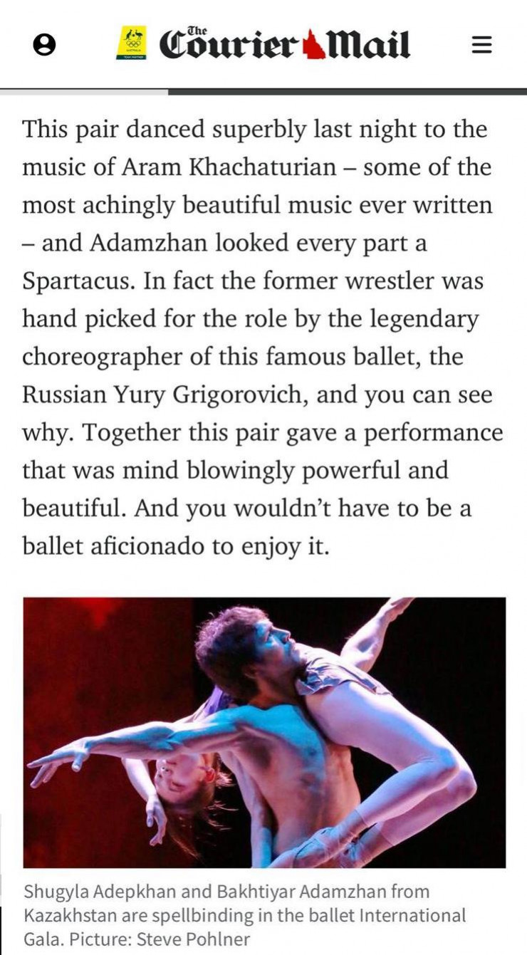 Один из крупнейших австралийских критиков – обозреватель искусства Фил Браун – высоко оценил выступление Бахтияра и Шугылы на страницах газеты The Courier Mail, сделав выступление казахстанцев центром публикации.