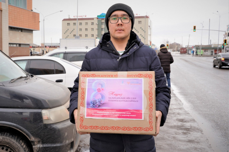 Также представитель городского акимата поздравил женщин и с призывом обратился к неравнодушным гражданам столицы. "Акимат города Нур-Султана поздравляет всех женщин с праздником, а также призывает всех неравнодушных граждан поддержать данную акцию, сформировать свою продуктовую корзину и донести ее нуждающимся семьям", - добавил Куаныш Молдабек.