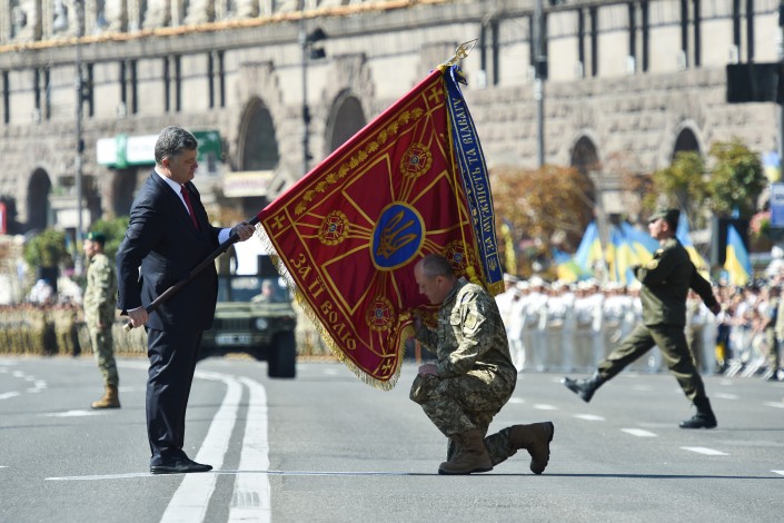 Президент Украины Петр Порошенко, выступая на Майдане Независимости по случаю 24-й годовщины независимости Украины, заявил о дальнейшем наращивании мощности армии и увеличении контрактной составляющей армии, передает корреспондент Tengrinews.kz.