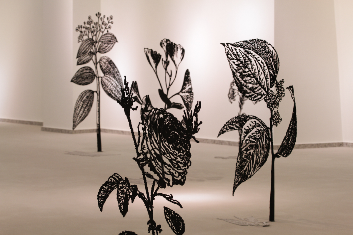 Первая инсталляция "Blackflowers" ("Черные цветы") состоит из 22 цветов, вырезанных вручную из алюминия.