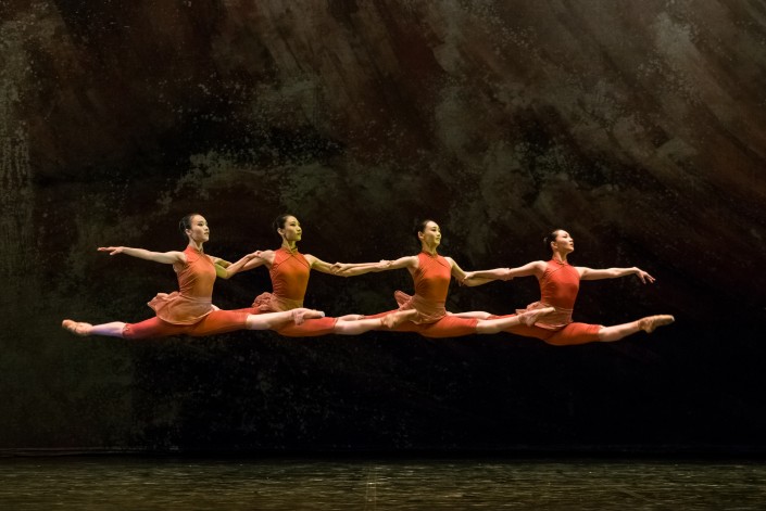 12-минутная постановка "Любовь Мулань" на музыку китайского композитора Тянь Фу также отсылает к истории Китая, но более древней. Черно-белая гамма лаконичной сценографии и костюмов; снова микс хореографического языка - неоклассика плюс модерн, плюс contemporary; динамика, ритм, внезапность падений и стремительность прыжков; неизменная синхронность и патриотический дух постановки.