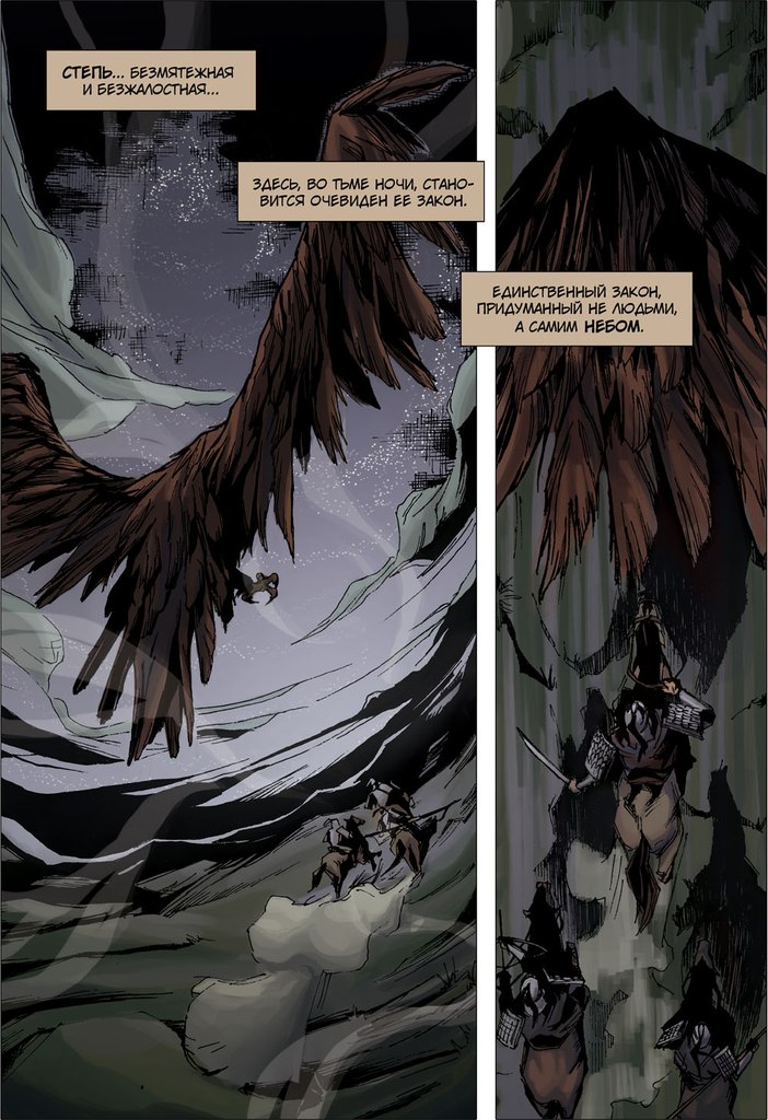 Комикс "Степь" посвящен событиям, которые произошли спустя век после первого нашествия джунгаров, когда несколько ключевых битв уже были проиграны казахами. Примечательно, что главными героями графической новеллы выступили не знаменитые батыры, а воины из числа простолюдинов.