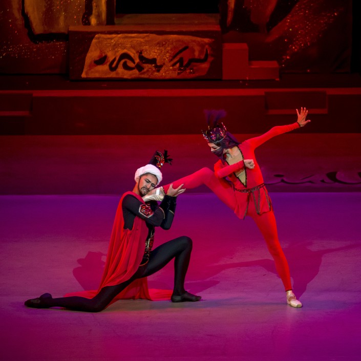 Партию младшей сестры царицы исполнила непревзойденная Татьяна Тен. Блестящая техника исполнения, дополненная эмоциональной составляющей партии, позволила создать на сцене каноничный образ Ширин – воплощение легкости, нежности и в то же время силы духа.