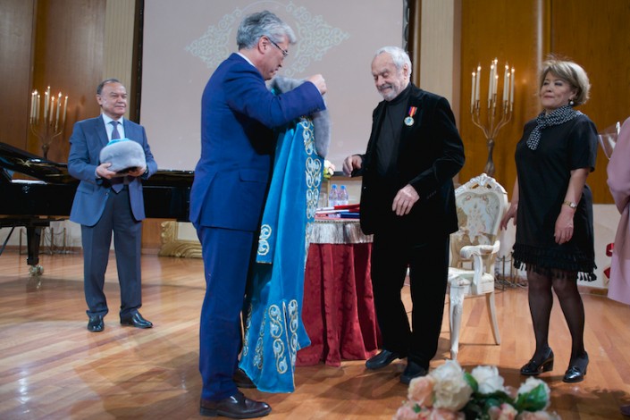 Министр культуры и спорта РК Арыстанбек Мухамедиулы вручил в "Астана Опера" орден "Достық" II степени за значительный вклад в культурное развитие страны, укрепление дружбы и сотрудничества между народами одного из самых выдающихся сценографов наших дней - Эцио Фриджерио.