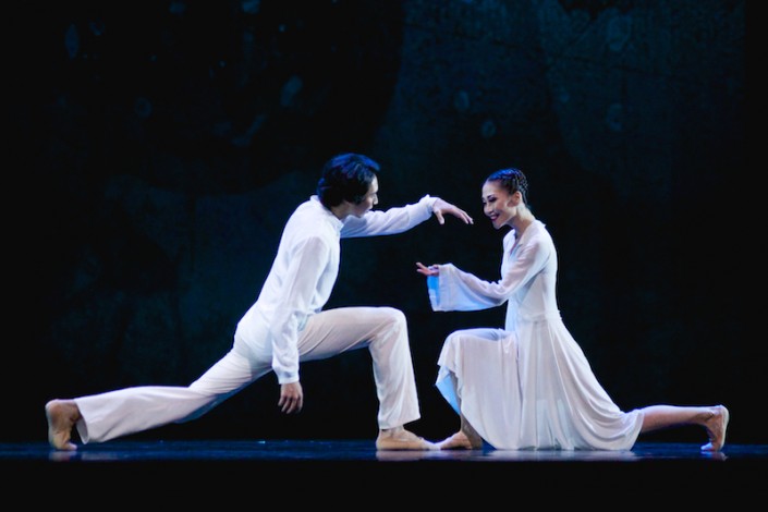 Интересное видение хореографа заключалось в том, что главных действующих лиц в начале спектакля можно было заметить только на заднем фоне. Некто незримый для публики держал танцовщиц, создававших удивительно ловкие балансирующие движения.