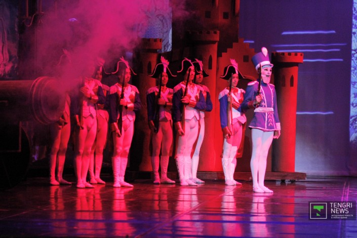 В репертуаре театра балет "Щелкунчик" шел на протяжении многих лет в постановке Василия Вайнонена. Новая постановка балета осуществлена народной артисткой РК Гульжан Туткибаевой и художником Вячеславом Окуневым. Свежее прочтение известного материала предусматривает новые технологии в сценографии.