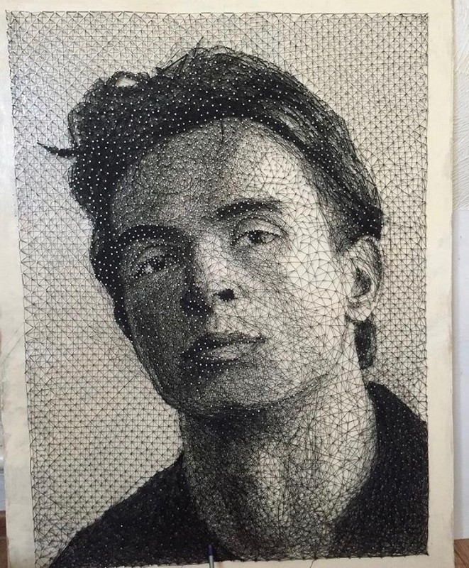 "Сначала я выбираю фото, с которого буду писать портрет. Для меня важно, чтобы оно рассказывало что-то о характере человека, а не было просто безликим. Потом делаю на фанере рисунок, прорисовываю линии карандашом. А уже потом забиваю гвозди и натягиваю нити. Это самый трудный этап, так как итог работы зависит от того, в какую сторону я буду крутить нитки, какой они будут длины и так далее. Нужно точь-в-точь повторить контуры. В некоторых местах нити натягиваются в несколько слоев - получается своего рода заштриховка. Если что-то не получается, нужно все распускать и начинать заново", - говорит художник.
