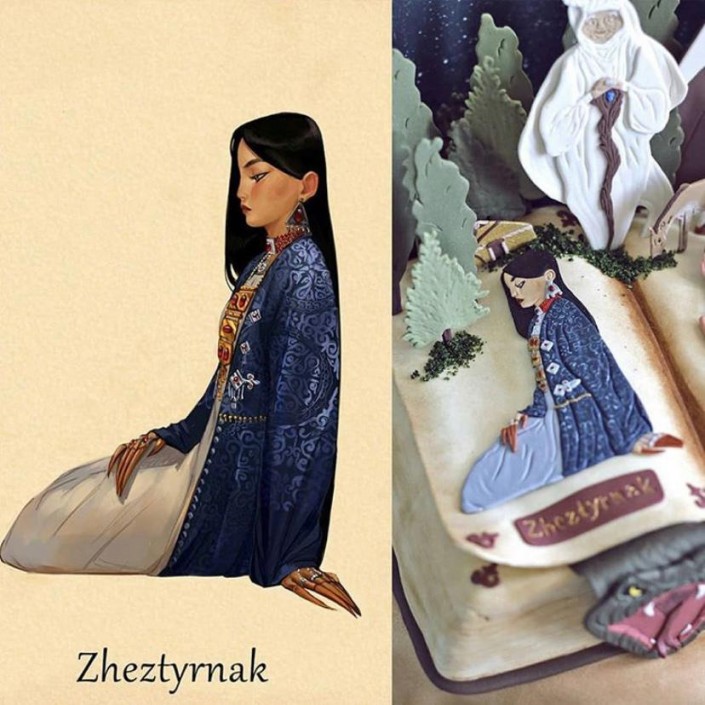 Девушка вдохновилась созданием тортов с изображением героев казахской мифологии после просмотра картин художницы Кантар Самал.