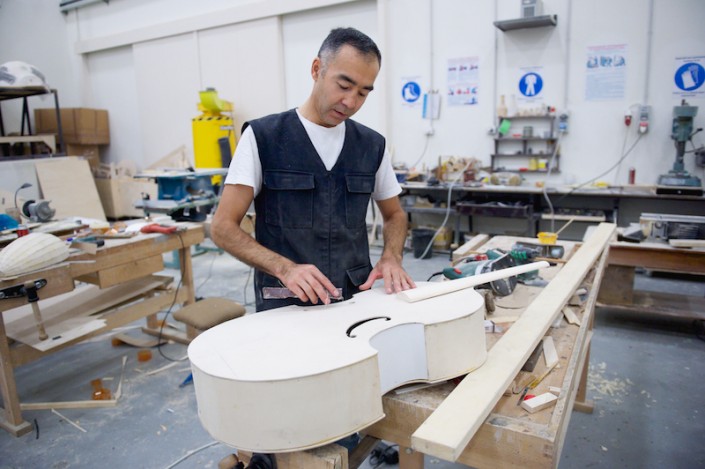 Инструменты ничем не уступают оригиналам по размеру, внешнему виду, и только мы с вами будем знать, что сделаны они из фанеры для того, чтобы артистам можно было легко и свободно их поднимать.