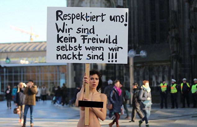 В пятницу 33-летняя гражданская активистка появилась полностью обнаженной на площади перед центральным кафедральным собором Кельна. В руках художница держала плакат, призывавший проявлять к женщинам уважение. "Уважайте нас! Мы не беззащитные жертвы, даже если мы обнаженные", - гласила надпись на плакате.