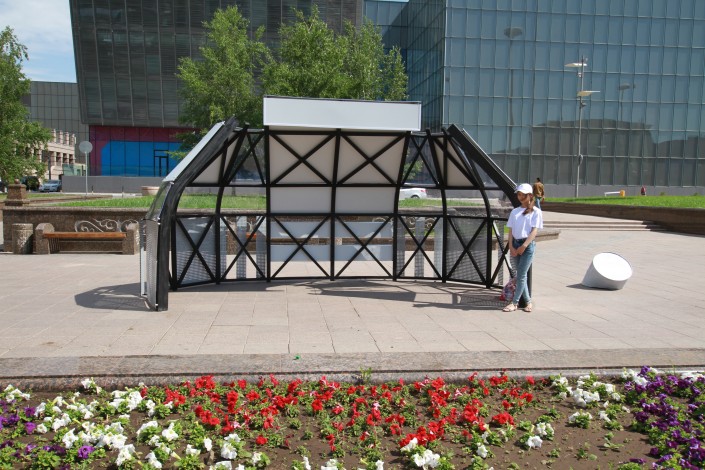 Японский архитектор Шин Шокита создал собственное предложение для оформления городских остановок. По своей форме конструкция напоминает юрту.