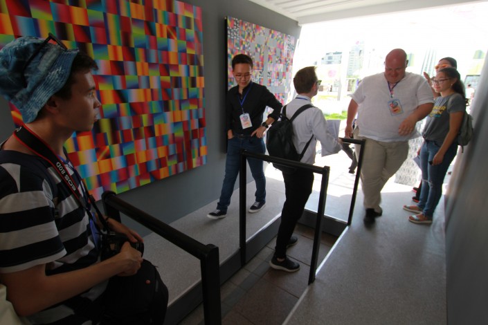По обе стороны границ фестиваля гости попадают на специальные интерактивные площадки. Внутри установлены десятки мониторов, которые меняют цвет в такт движения человека. Вкупе с атмосферной музыкой, которая звучит внутри, площадка становится отличным местом для коллективных танцев.